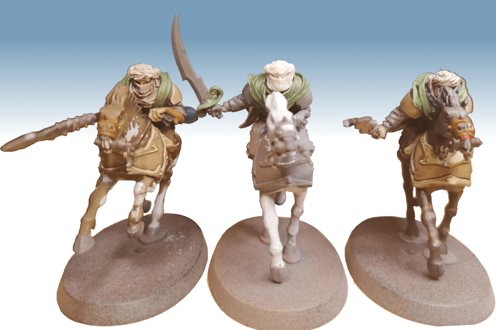 WIP of some rough riders. Made from cadian bits, Dark Riders from AOS, greenstuff and puppetswar heads. No Tallarn army is complete without the inclusion rough riders. I found the dark rider horses perfect for the job in this conversion with their dynamic poses, armour and twisted features. Although perhaps slightly skinny when looking head on, these models look awesome on the table. Some of the most fun I’ve had converting because they blend so well together.