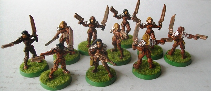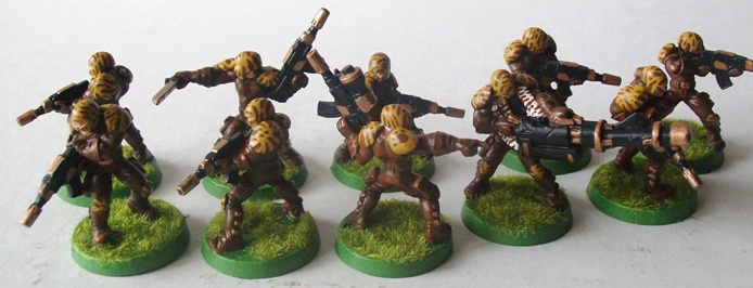 Kenton has also mixed in third party miniatures, like Void 1.1 soldiers as scouts, and Etoiles Mortant figures from Warzone as female assault scouts.