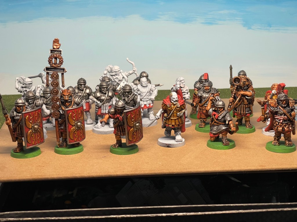 The Romans arrived in varying states of assembly and paint completion. Some of them had to be stripped, although I elected to live with any of them already primed black and just give them a quick top-down white spray prime after rebasing them on 25mm rounds.