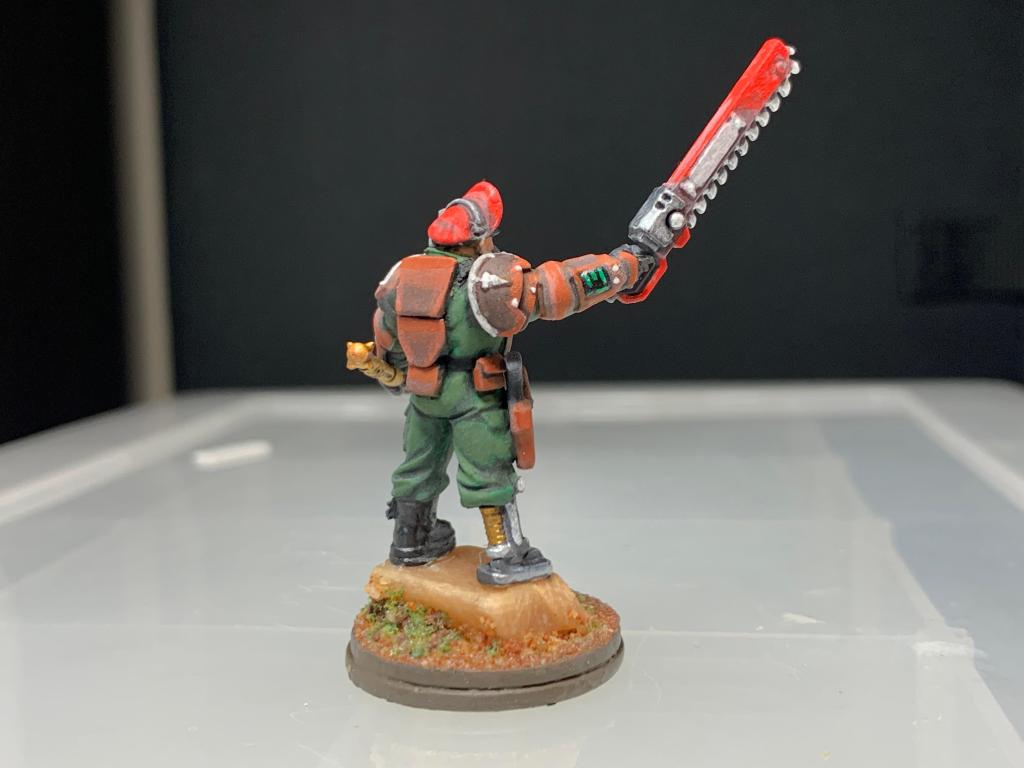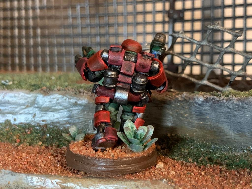 The finished mini is in striking red colors befitting a trooper meant to catch the eye on the tabletop.