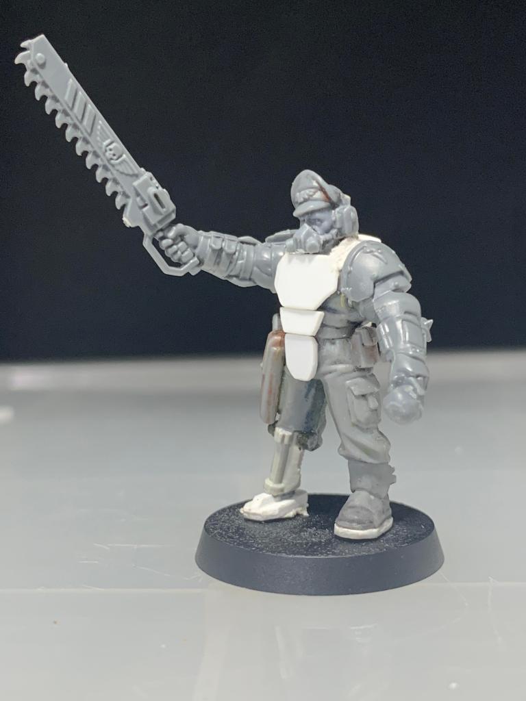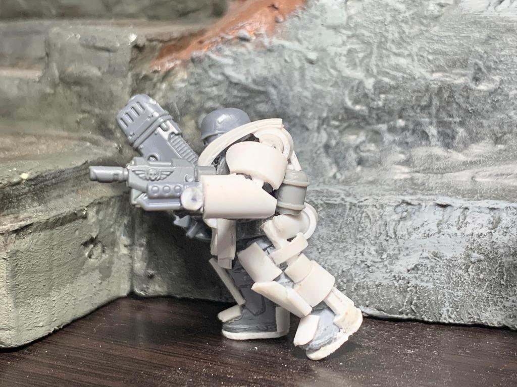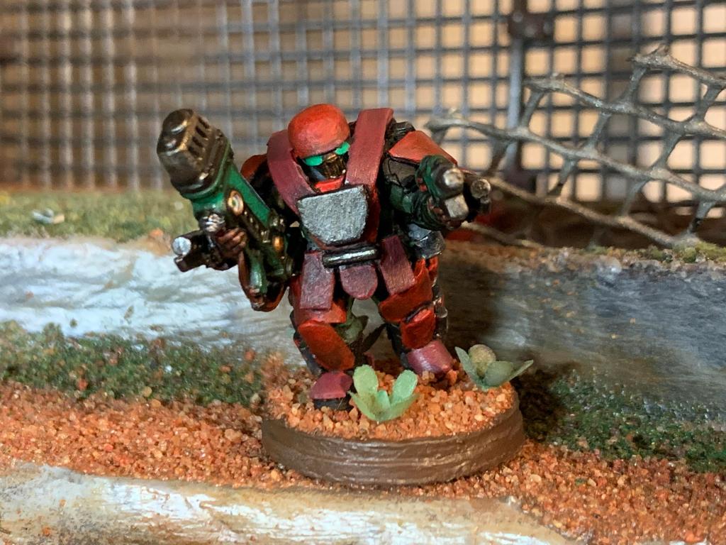 The first suit is built on a combination of a Warhammer 40k Cadian shock trooper and Wargames Atlantic Raumjäger bits.