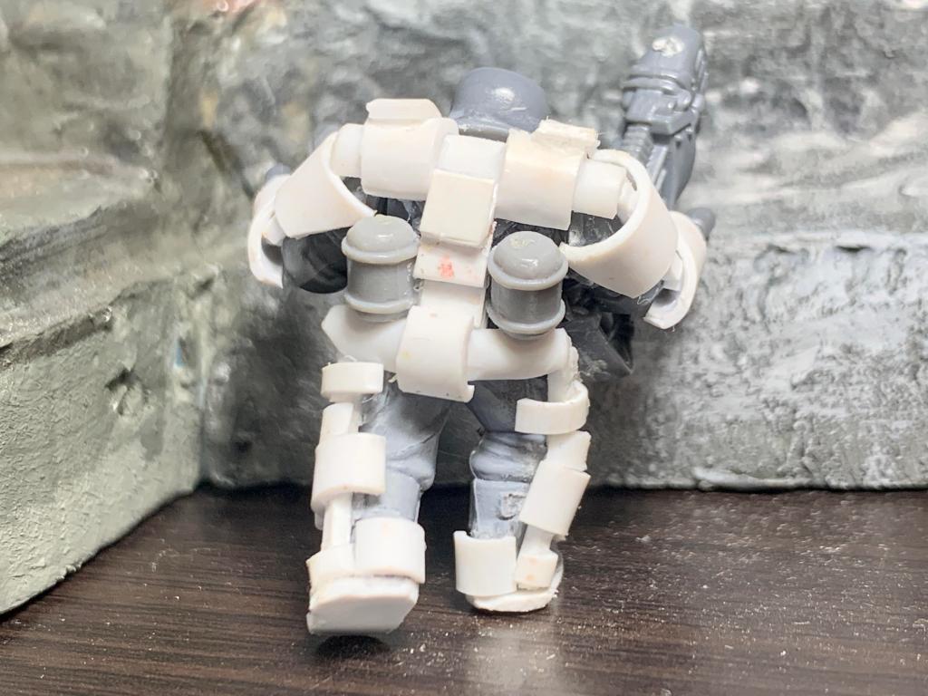 That wasn’t the only armor style created. Another trooper sports plasticard rods and a back mounted powerpack, making him more lightweight similar to the suits of the movie Elysium.