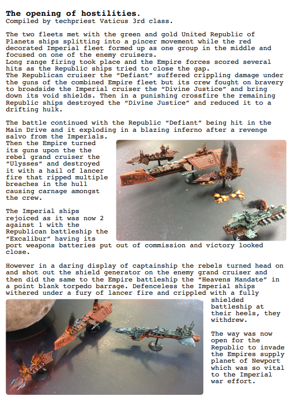 The defense of the Imperial world began in space, with a game of Battlefleet Gothic to kick off the fight.
