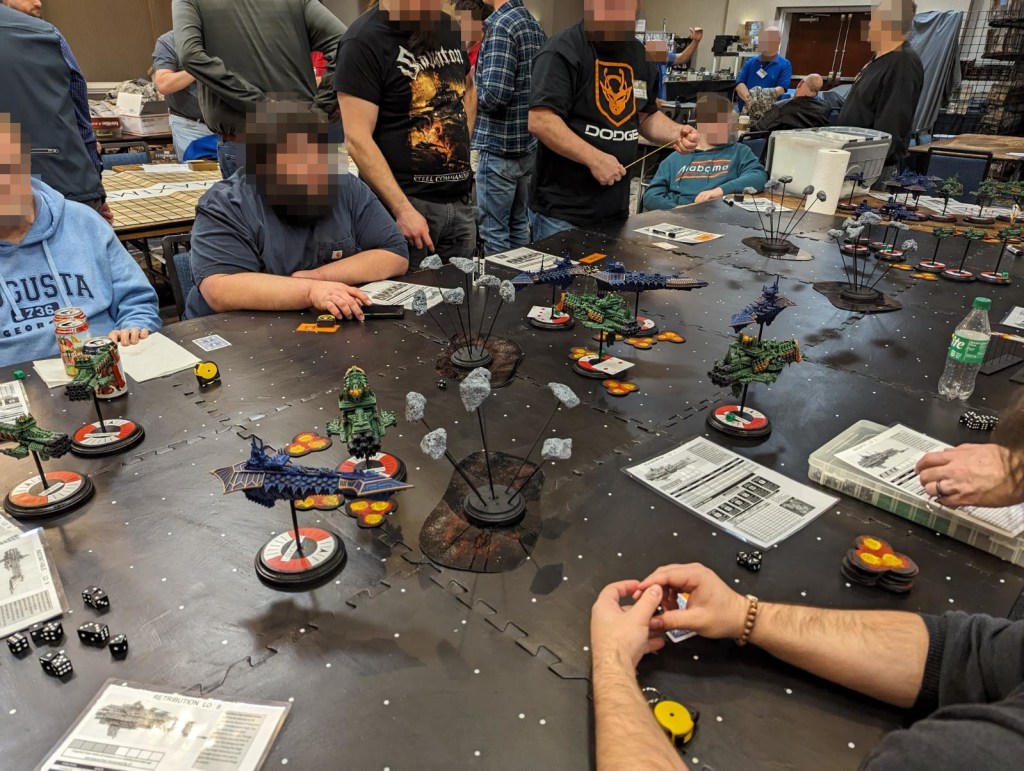 Battlefleet Gothic and Battletech games were found on tables of the more scifi inclined.