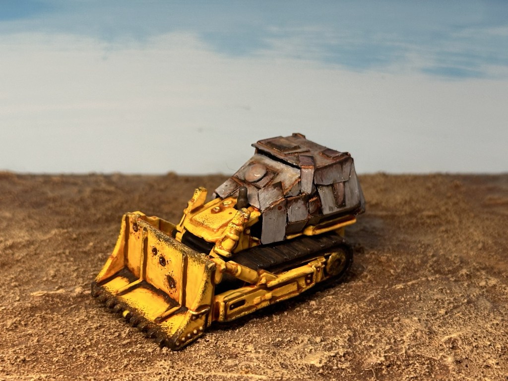 I tried a grungy yellow for something different. This one came out too brown and muddled, but I kept at it with a pair of better followup vehicles for the construction crew.