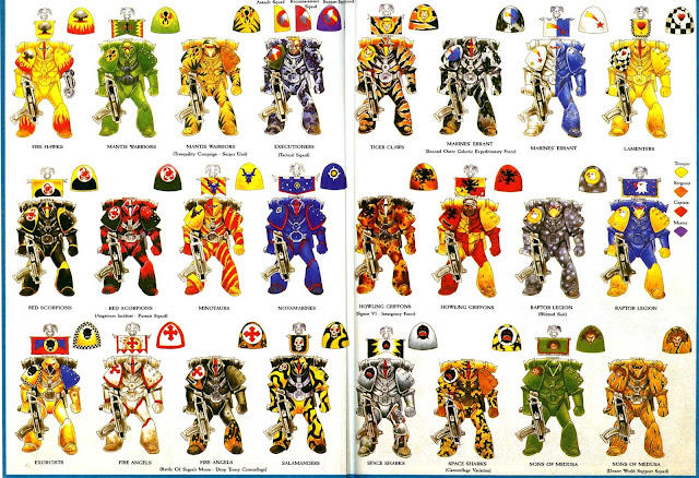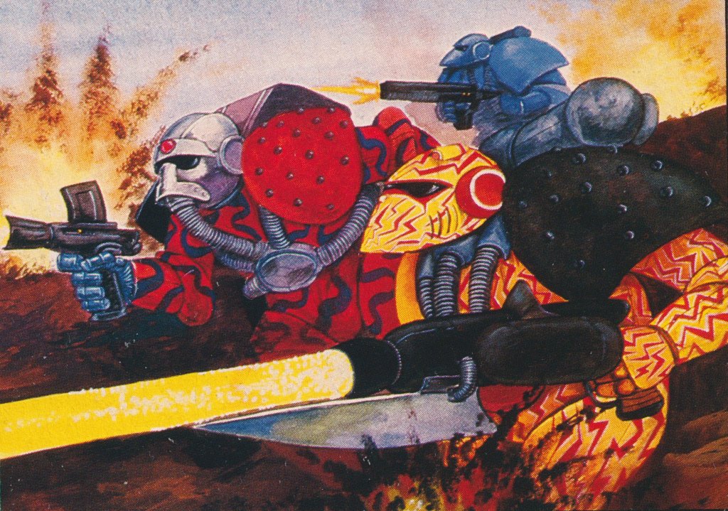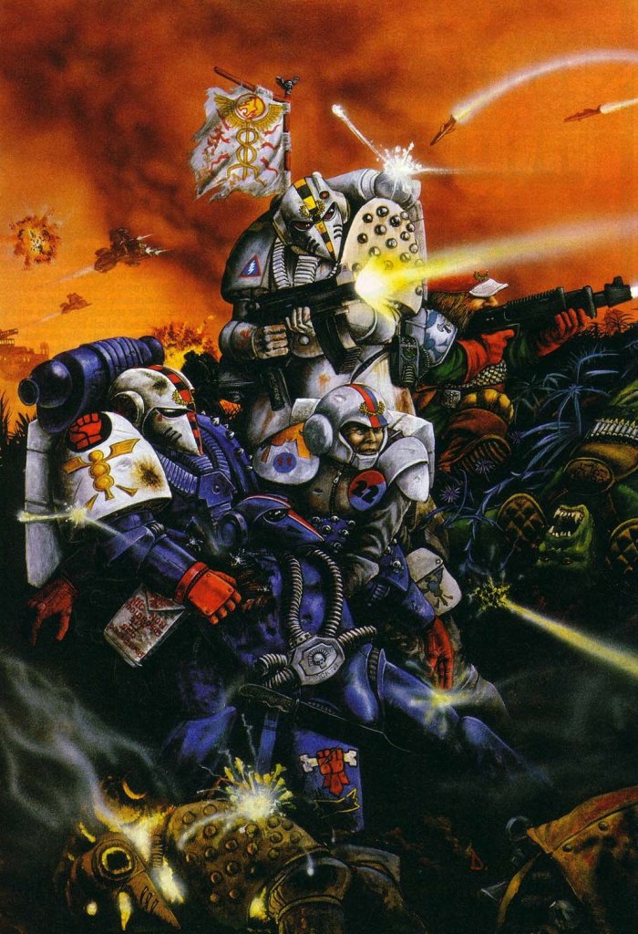 A hobbiest reached out to me with a trove of collected material, which included a folder filled with Rogue Trader era space marines. The contents are just too good not to post. I have tried to track down sources for the work as best as possible.