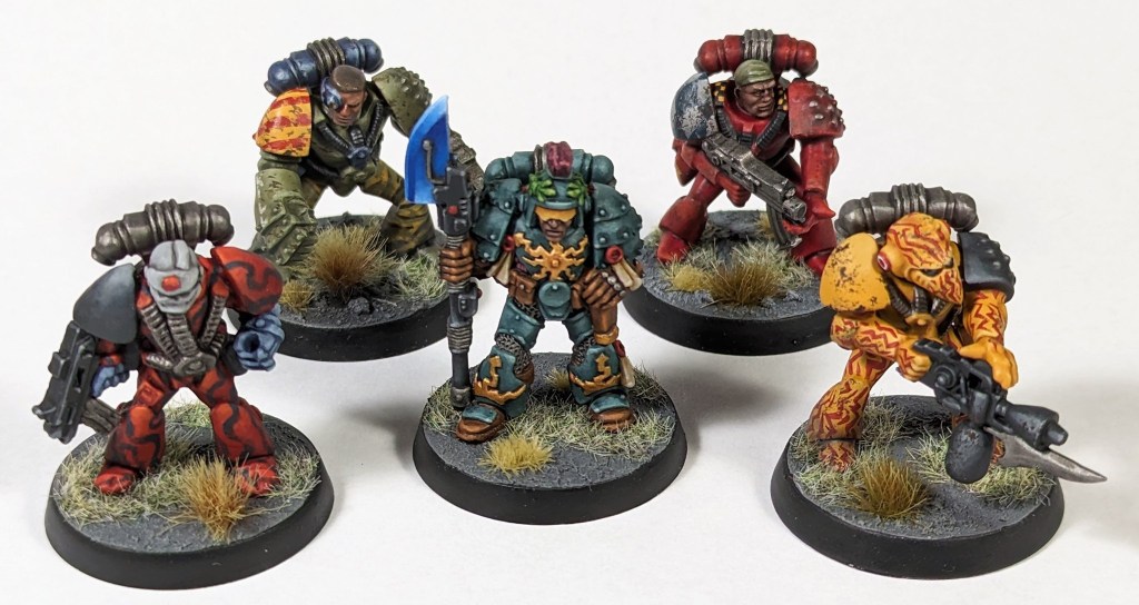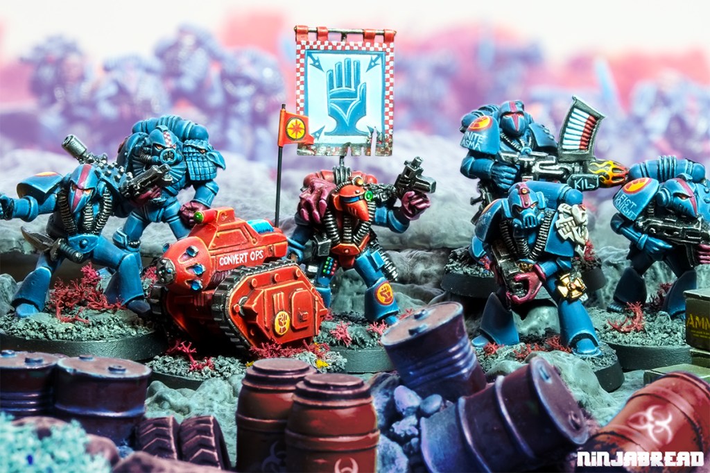 Next are a variety of Crimson Fist marines painted by Ninjabread.