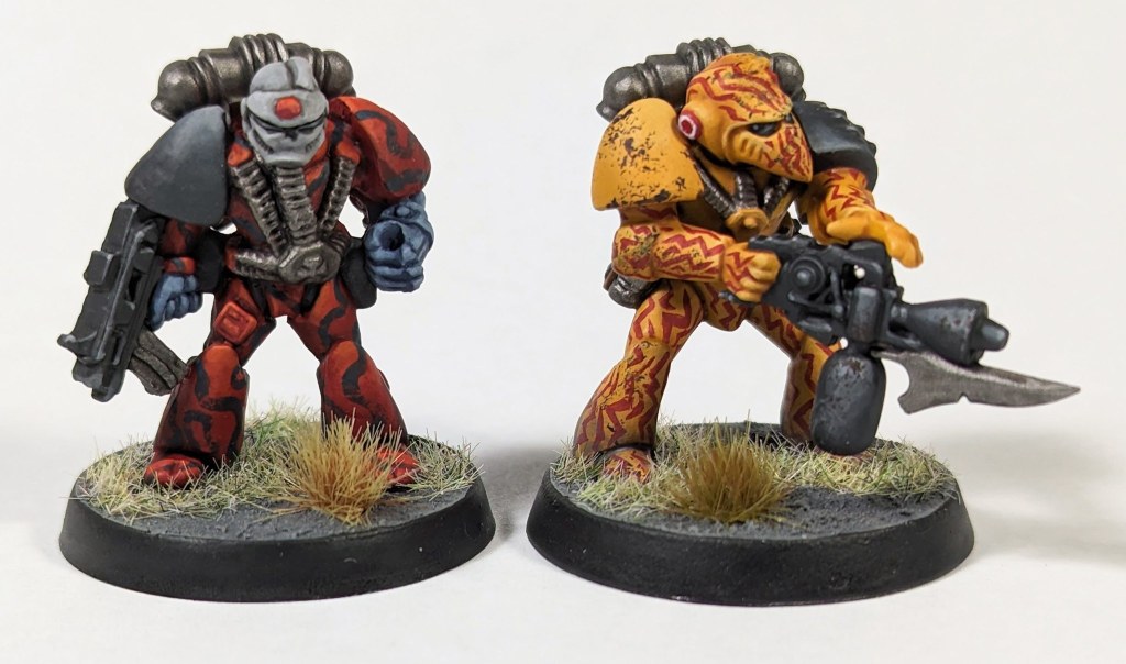 These marines with detailed abstract patterns that call back to some of the RT promotional paintjobs were included, though I couldn’t track down the creator.