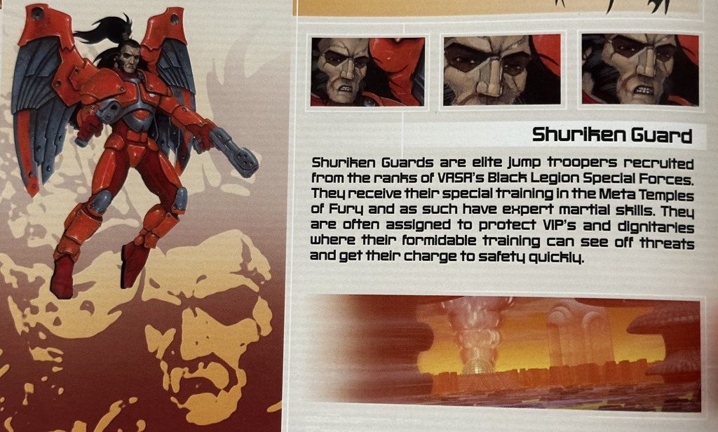 Other starter factions represented in the book include the cyborgnetic Syntha, the meddlesome VASA, and the alien Koralon menace.