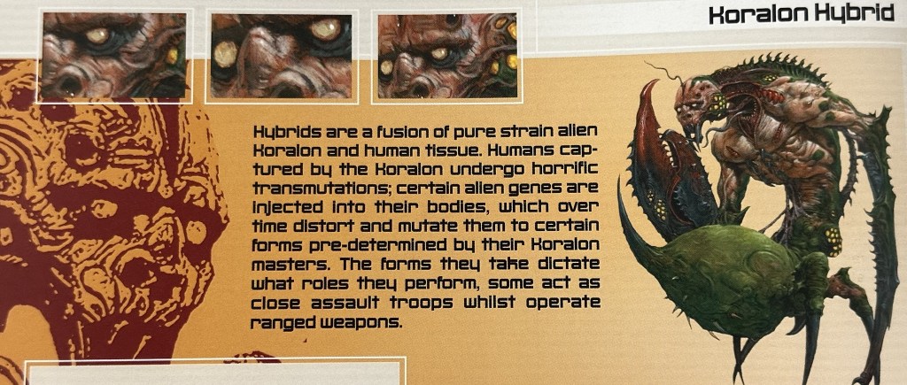 I recently snagged the official rulebook that would have come in the starter box (as opposed to the printable free PDF I used back in the day), and I wanted to look through some of the visual highlights. I won’t cover the rules, but if you want to play a game that works at platoon size with alternating activations, and is otherwise riffing on 3e 40k, the free PDF is still available here.