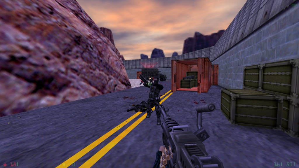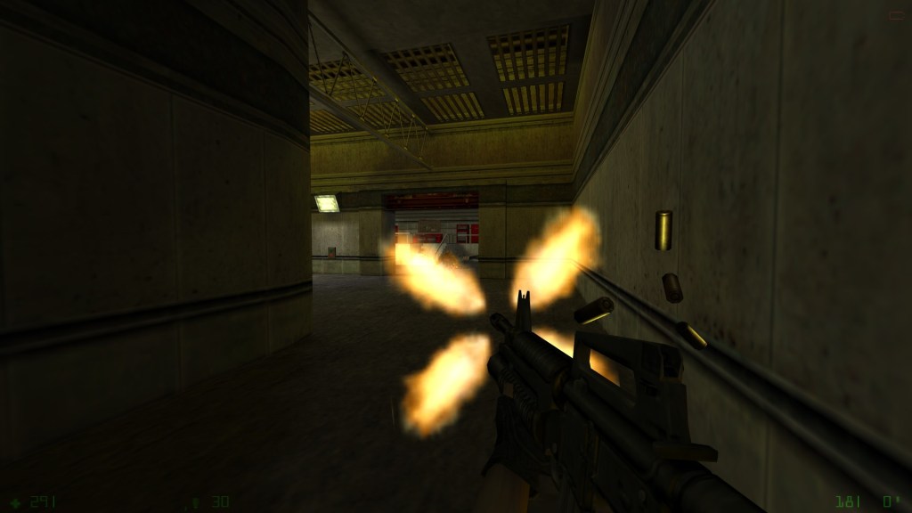 Opposing Force added a few new weapons, which is welcome although the weapons selection somehow ends up feeling both bloated and missing something. In terms of bloat, the game gives the player both a knife and a wrench as melee weapons. I never found myself using melee weapons for anything but destroying boxes; it seems bloated to provide two melee weapons in a shooter like this. Similarly the game provides two handguns- the Glock from the original game alongside a new Desert Eagle. I similarly found myself never much using the Glock except to sniper distant headcrabs, which was not an entirely needed use. The Desert Eagle is quite an amazing addition, good power and rate of fire, decent capacity and available ammo pickups.