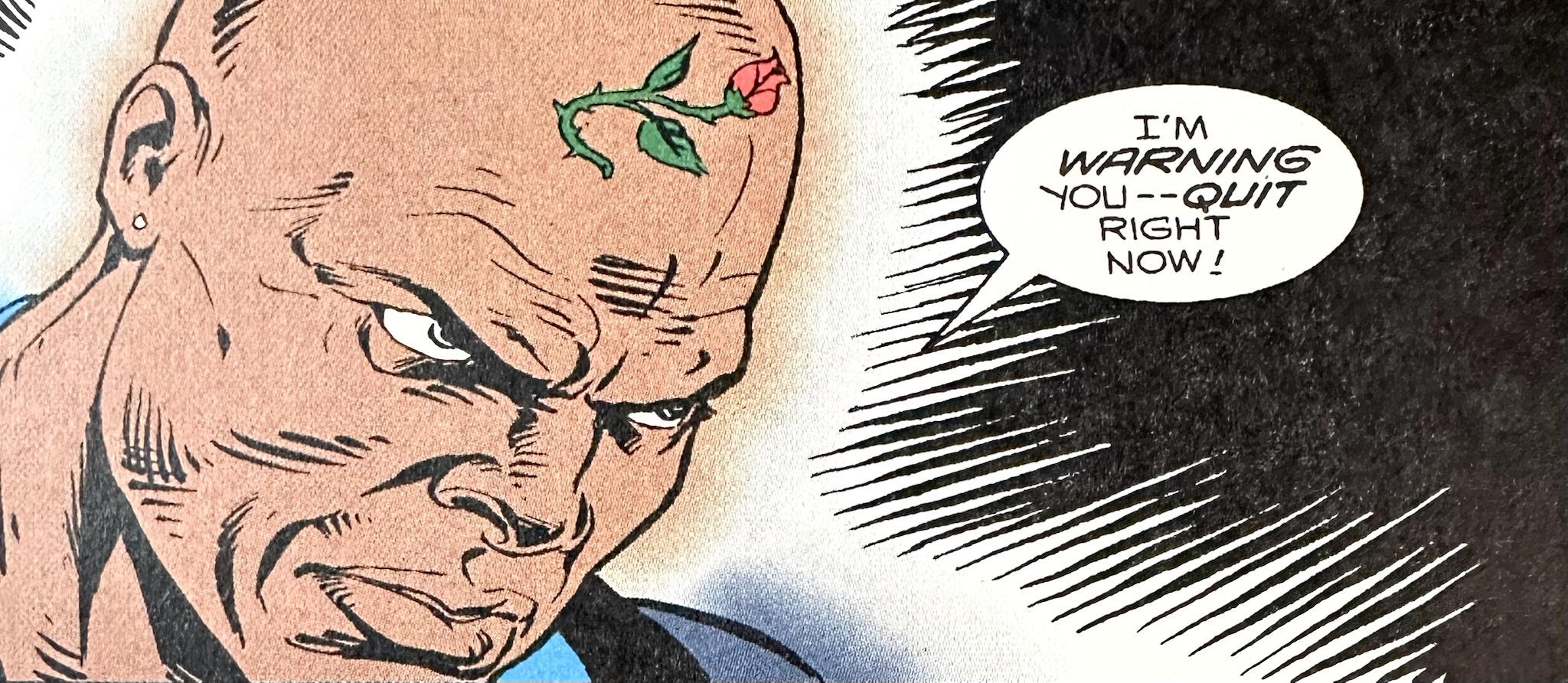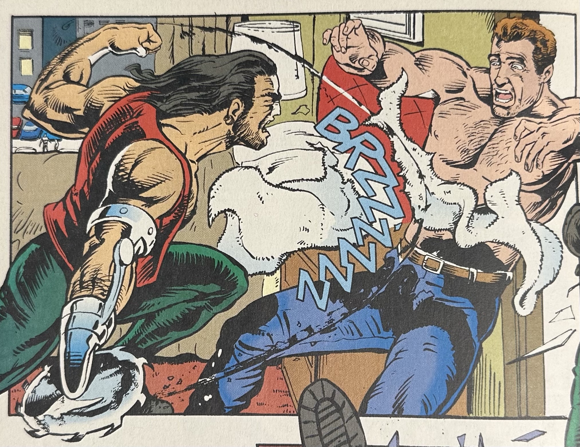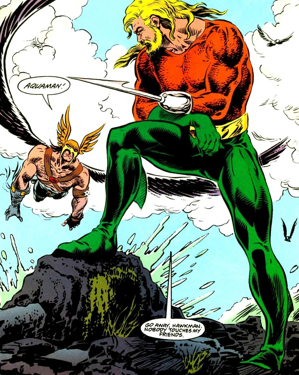 Within a page of arriving in Mexico, Jake is attacked by a man with a buzzsaw arm. The man oddly reminds me of Aquaman visually.